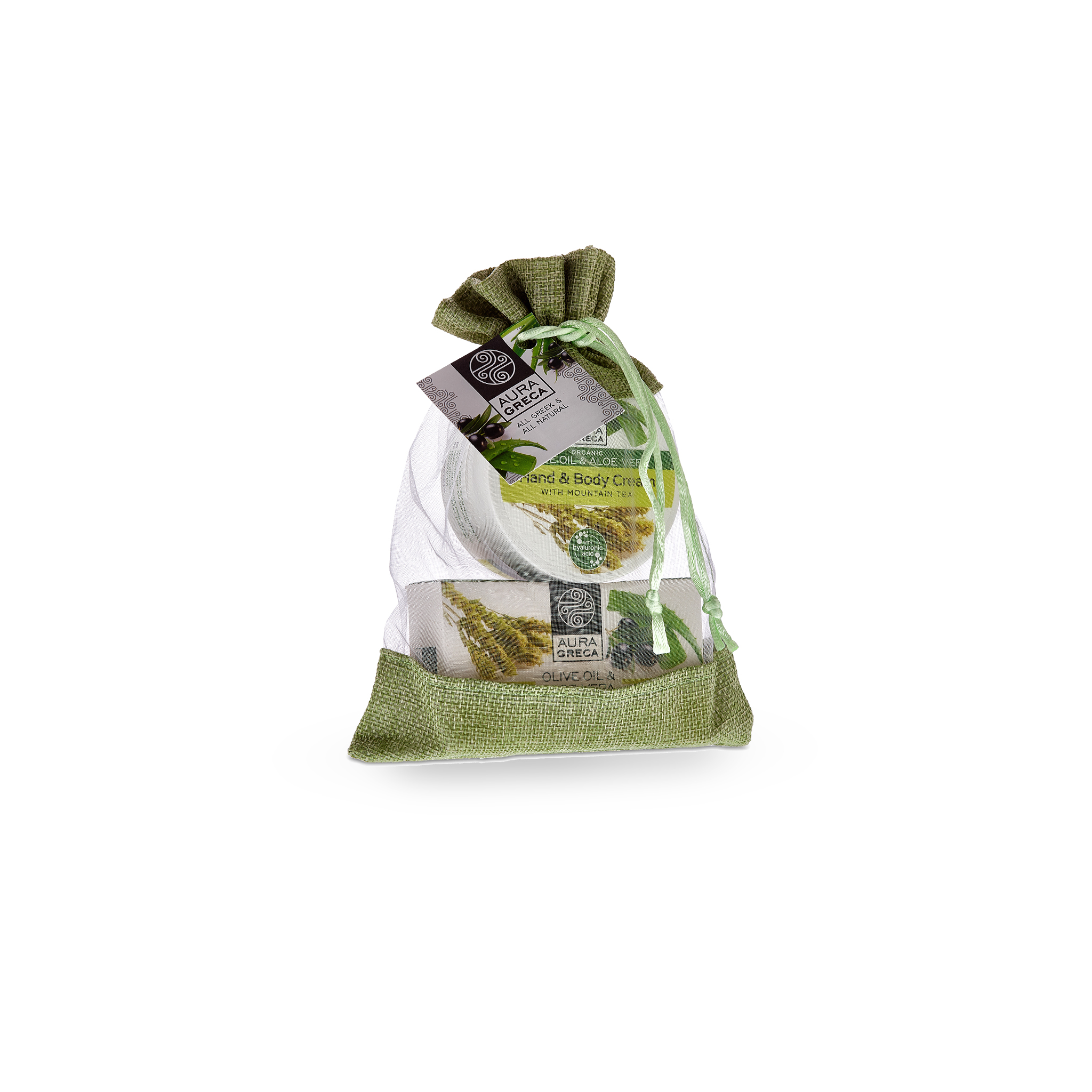 Πουγκί σετ δώρου με Κρέμα Χεριών Τσάι του Βουνού 50ml + Σαπούνι 125g